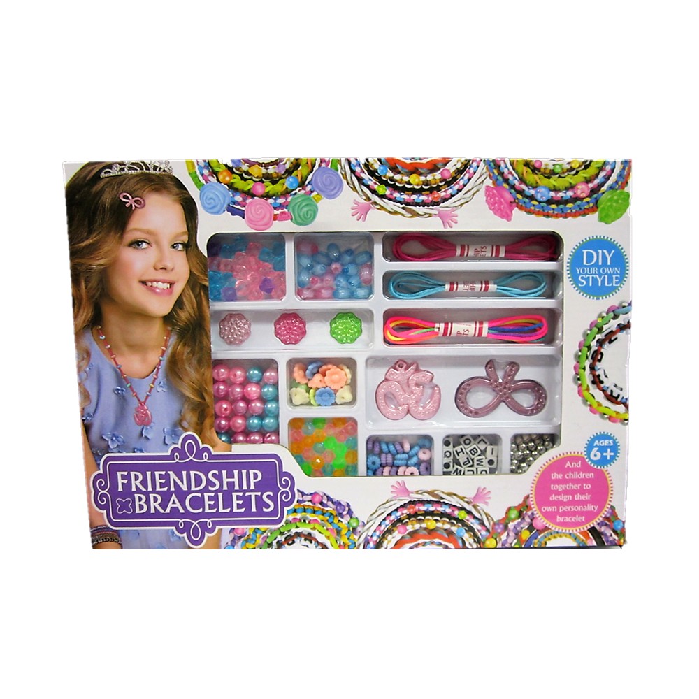 • Divertido Set de Chaquiras e hilos de diferentes formas y colores ideal para que las niñas pasen horas interminables de diversión creando pulseras anillos o cualquier cosa que imaginen. • Este kit de Chaquiras ayuda a estimular la imaginación y creatividad de las niñas mientras ejercitan su coordinación y destreza. También ayuda a reforzar su autoestima atención y concentración. • Incluye chaquiras de diferentes formas e hilos de diferentes colores.Destinatario :