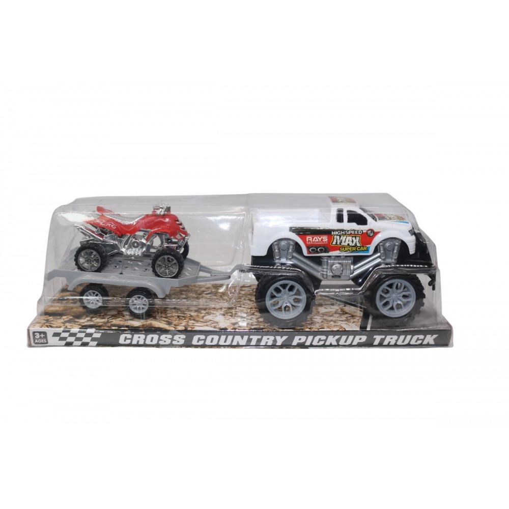 DESCRIPCION: Espectacular Camioneta con Cuatrimoto de Fricción ideal para que los niños jueguen y se diviertan durante largos periodos de tiempo.