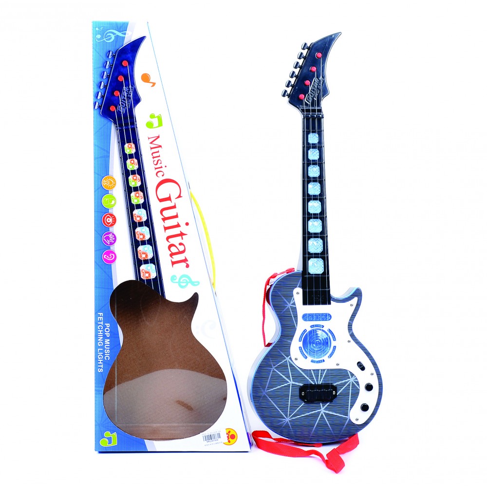 NOMBRE: GUITARRA POP NIÑO CAJA DESCRIPCION: Espectacular Guitarra ideal para que los niños desarrollen el talento musical y saquen lo artista que hay en ellos mientras se divierten rockeando tocando bailando y mágicas melodías. Este instrumento musical ayuda a promover el aprendizaje continuo la creatividad paciencia y bienestar emocional de los niños mientras le ayudan a reforzar sus habilidades cognitivas motoras gruesas motoras finas de lenguaje y sociales. Requiere 3 pilas AAA no incluidas. - Dimensiones del producto empacado: 19.5X54.5X6 centímetros - Disponibilidad permanente - Despachos a nivel nacional - Tiempo de entrega aproximado 3 a 4 días hábiles contados a partir del día hábil siguiente al pedido. La plataforma te dará un tiempo de entrega mas preciso al momento de concretar la compra. Estamos atentos a resolver cualquier inquietud que tengas después de revisar las fotos y descripción del producto. JUGUETELANDIA más de 30 años ofreciendo diversión.