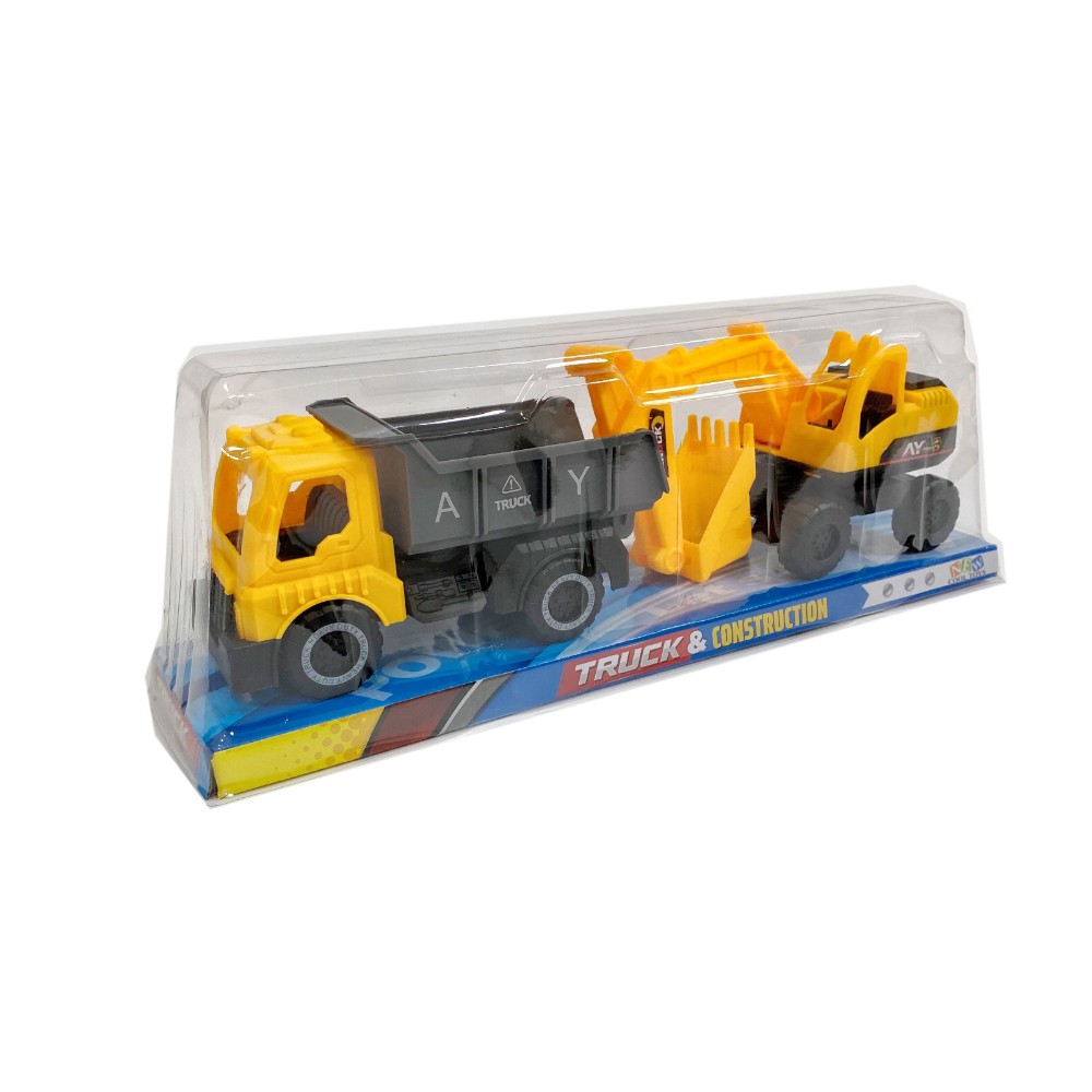 DESCRIPCION: Espectacular set de Volqueta y Excavadora de Fricción ideal para que los niños jueguen y se diviertan durante largos periodos de tiempo. Volqueta y Excavadora impulsadas por fricción, generando un juego activo y creativo en los pequeños. Éste juguete ayuda a fortalecer el desarrollo temprano y cognitivo de los niños y el desarrollo de habilidades de motricidad, control y coordinación de extremidades y manos.